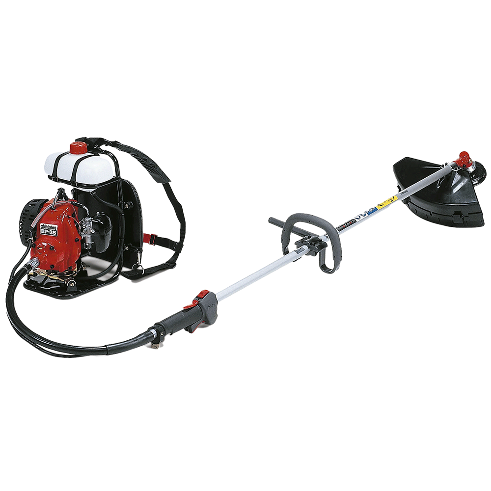 The Shindaiwa BP35 backpack brushcutter is built for demanding, uneven terrains. It features a flexible shaft for precise control, an aluminum outer tube for durability, a loop handle with rubber overmold for comfort, and a heavy-duty vibration reduction system.